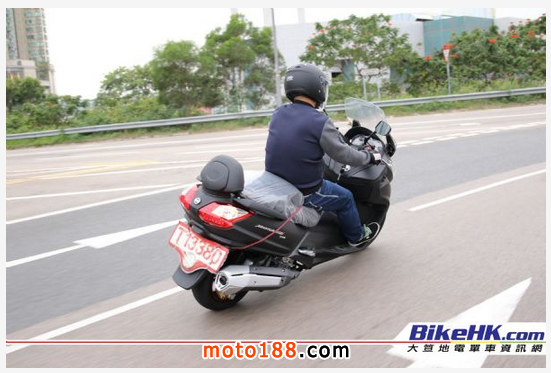 事隔一年,對Maxsym的印象有點模糊。不過騎在新的Maxsym 600i ABS上,忽然間覺得車重比預期的較輕。明顯地Maxsym 600i走的不是運動路線,單憑它的座姿已可以告訴你,雙手自然的擺放,雙腳有超多空間前伸,根本就是巡航車的坐姿。加上高風鏡的設計,很有沖動騎著它到新界行個大運,因為你會預期到騎Maxsym 600i有多么的舒適。