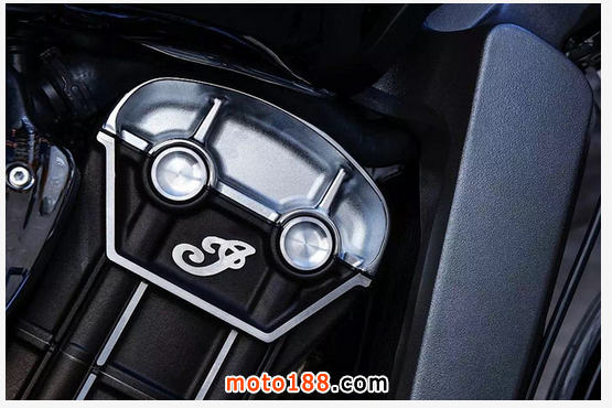 該發(fā)動機采用了風/油冷四沖程V型兩缸,排汽量111 C.I(CubicInch立方英寸,相當于1.811L),設計的最大轉(zhuǎn)速為5500rpm、最大扭力輸出超過了160N.m。與之同時匹配的是六檔的齒輪箱濕式多片的離 合器。并搭載在已經(jīng)上市的印第安酋長車型上。