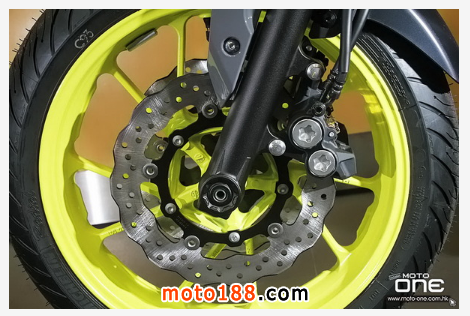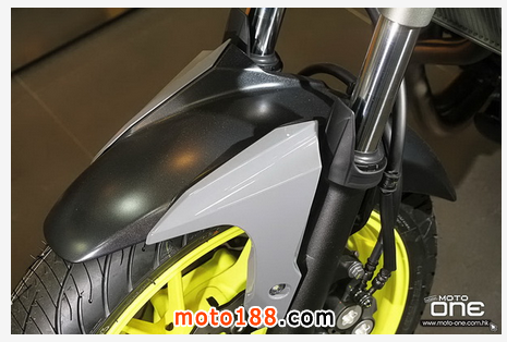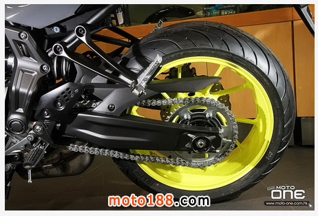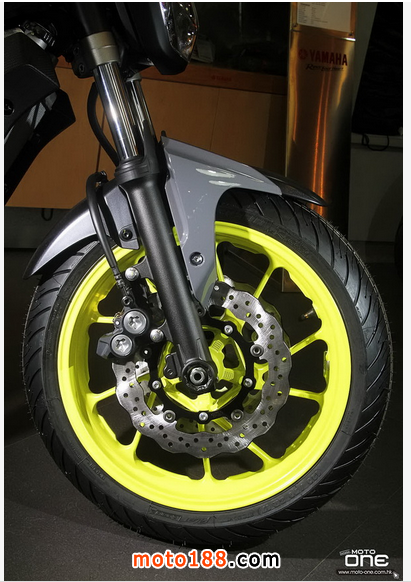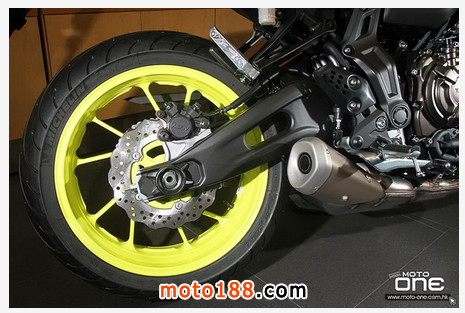 ●2016 Yamaha MT-07 改用螢光黃的前輪框。