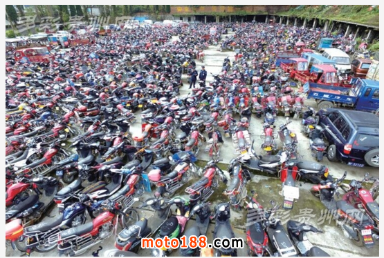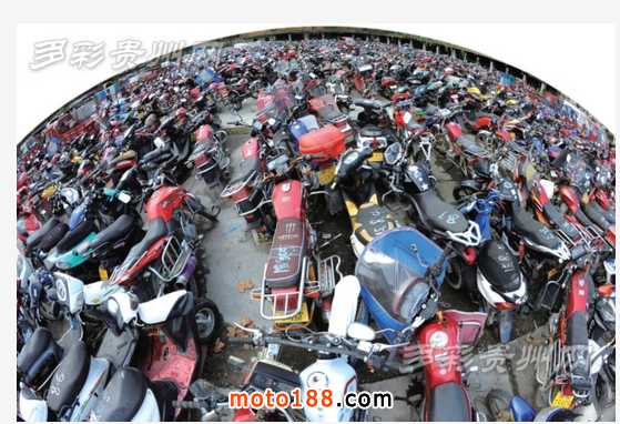 在貴陽市花溪區金竹鎮,有一個叫“貴陽市公安交通管理局后勤裝備處涉案物品管理科”的地方,這里存放著近7000輛貴陽市交通一、二兩個分局收繳的違法違規摩托車、電瓶車。就規模而言,算得上是貴陽市目前最大的摩托車“墳場”。