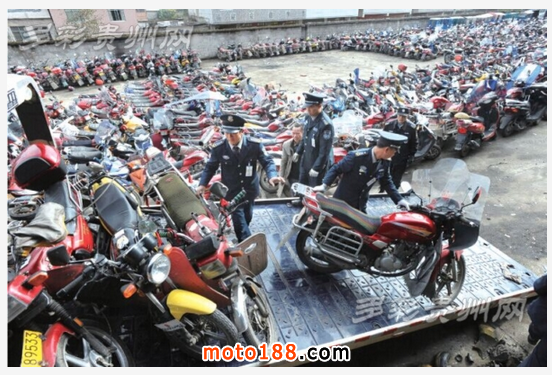 “每輛摩托車入庫前必須經歷四個步驟,首先是編號,然后用油漆在摩托車座位上寫上編號,所謂編號就是收繳日期,比如編號15.12.6,說明是2015年12月6日收繳的。”張光發說,第三步是拍照,包括摩托車前后左右四張照片,最后一步就是登記,包括車輛的車架號、發動機號以及是否上牌。登記的所有信息將會進入貴陽市公安交通管理局涉案物品(車輛)管理信息系統,方便管理與查詢。