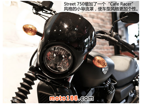 傳統的哈雷摩托車給人們的第一印象是重裝,而哈雷入門車型Street 750卻給人一種相對容易接近和輕松的感覺,它主打街道風格,不歸屬于Sportster、Dyna、Softail、V-Rod、Touring的任何一支。Street 750作為中量級巡航車卻擁有靈巧的操控和相對入門的售價,也深深的吸引了年輕人和女性消費者。