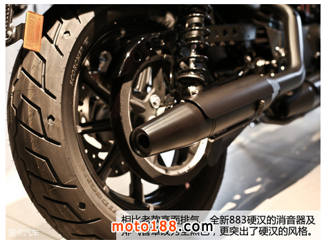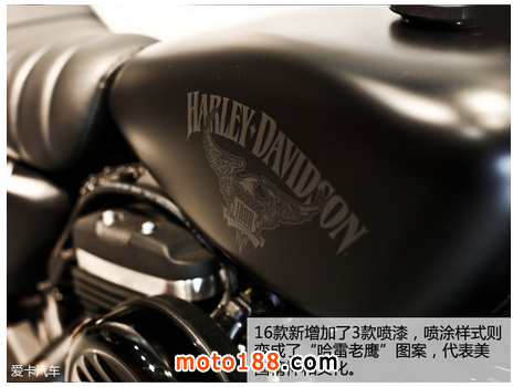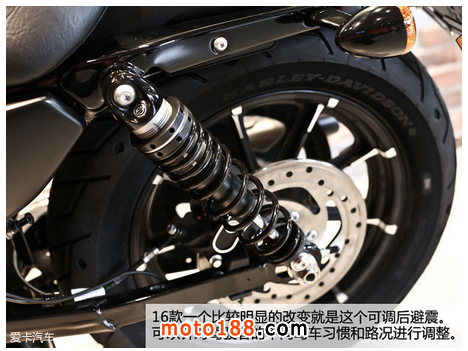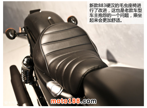 2016年暗黑定制版883硬漢車型真的是在諸多方面進行了改進,給了我們不少的驚喜:可調節的后減震器、油箱涂裝、Bobber風格、Tuck and Roll舒適座椅、空濾形狀、全新9輻輪圈、純黑色排氣管等等吧,哈雷戴維森這回給大家的感覺確實是在用心提升產品的品質,希望給到喜愛883硬漢的擁簇者一個驚喜。