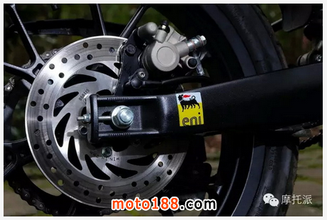 后制動(dòng):218mm單盤(pán)單卡鉗,制動(dòng)力道不錯(cuò)。剎車(chē)抱死,來(lái)點(diǎn)漂移,是不錯(cuò)的玩法。