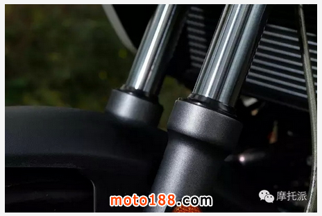 前懸掛:37mm正立叉,壓縮及回彈阻尼適中,下部的磨砂套筒配合磨砂擋泥板,視覺(jué)效果明顯。