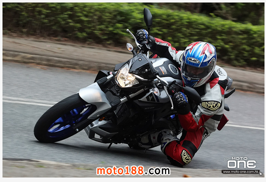 李有昌說由于MT-03的轉彎很靈活及穩定,再者油門及離合器操控容易,相信新手也可 松容不迫處理窄路掉頭的問題。另外,李有昌說MT-03的尾避震針對街道設定,因此相對較軟,但在凸凹路面行駛時較舒適,要是希望提升彎速穩定度,不妨調 高硬度。李有昌最後說意想不到MT-03不論是低檔或高檔,波箱均十分暢順,加減速產生的震蕩很少。