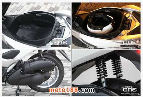 由於NMAX 155使用增加車身剛性的鋼管車架,因此犧牲了平地臺。至於大頭佛必須倒轉放才能儲存在座椅底下,否則座墊無法蓋起來,擺放頭盔後只余下小量空間。