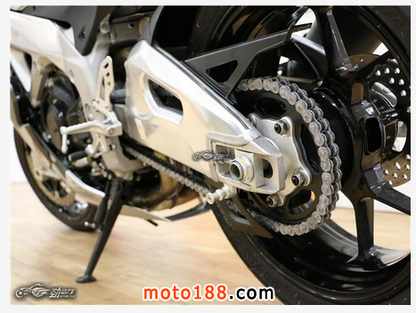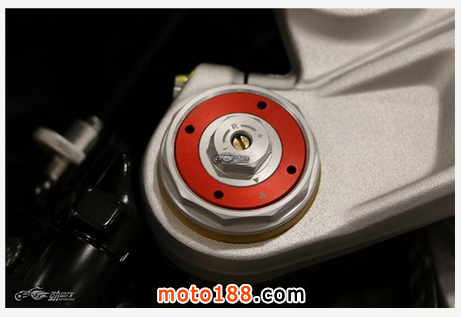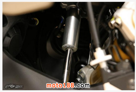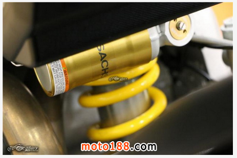 中央獨立式液壓彈簧后減震器同樣采用德國的薩克斯(SACHS)品牌,帶有預載、輪距、液壓阻尼可調,行程為130毫米。