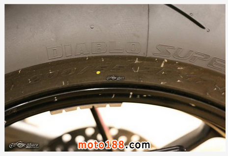 RSV4 RR使用了新一代的倍耐力 DIABLO SuperCorsa SP輪胎,這款輪胎也是眾多超級跑車的首選之一。前輪胎規格為120/70 ZR 17,后輪胎規格為200/55 ZR 17。