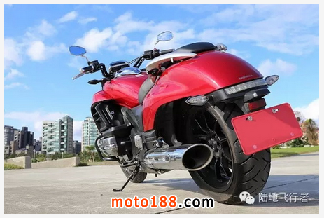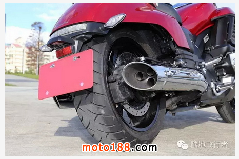 車尾、后座一直到油箱,都展現出屬于巡航車的經典水滴造形。再把視線往下移動,便能看見排氣管尾端出口,其實包覆在外面的是外層飾管,而真正的排氣管是采用六出的形式,就像火神機槍一樣。