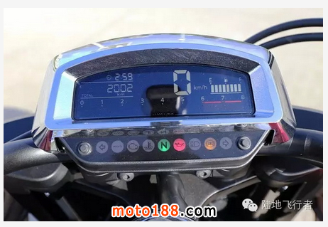 F6C 的車電配備,在優雅的風格中增添了一些現代潮流。在電鍍外框的儀表板內,是高對比的雙色液晶螢幕,引擎燈號一直列排在底下。儀表內提供了基本的時速、轉速和油量資訊,簡潔且明確。