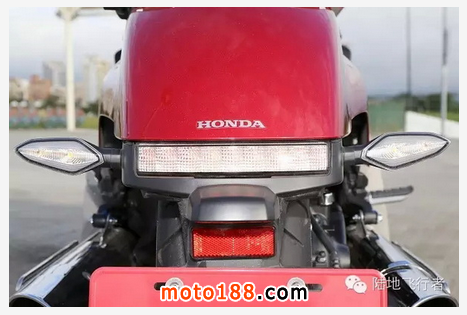 若說這臺車的前端被霸氣整流罩搶盡光彩,那后方最引人注目的就是兩個碩大的尾廂了。擁有整流罩的CTX1300 在前端的寬度較寬,尤其再加上類汽車的后照鏡,車輛的總寬度較大。雙后箱的配置,剛好平衡了前后視覺重量。從整流罩到油箱,油箱到坐墊,由車頭一路往后延伸到車尾箱的造形,一氣呵成。