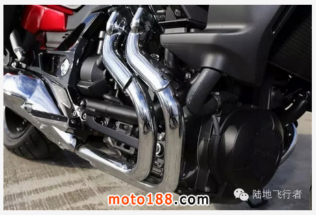 側置的V4 引擎,缸頭位置較高,排氣管由上往下繞了個圈,讓炙熱的排氣管遠離駕駛,同時也增加了工藝的美。根據本田原廠的資料表示,設計這樣的彎曲也讓排氣聲浪擁有更強烈的鼓動。