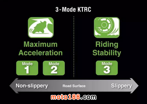 無論晴雨,無論何種環境,3種模式的KTRC系統為您的安全提供最為合適的動力模式,盡情享受騎行無壓力。