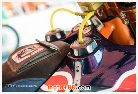 在路書的下方,安裝有行車信息儀表,顯示摩托車的速度、行駛里程以及油量等相關信息。對于達喀爾這種難度極高、比賽規則嚴苛的拉力賽而言,嚴格的限速雖然在一定程度上限制了車手去發揮,但也保證了車手的安全。雖然參加達喀爾拉力賽的車手都有著不俗的技術水平,遇到限速還是要乖乖遵守,不要存在僥幸心理,賽會官方給配備的GPS可以全程監控你的車速。另外一個非常重要的是,一定要保證油箱內有充足的燃油。如果因為燃料不足導致某個賽段不能在關門時間之前達到那就真是太虧了,KTM450賽車配有兩個油箱,總容積34升,分別位于賽車的前部和尾部,這樣也有利于賽車前后重量的分配。