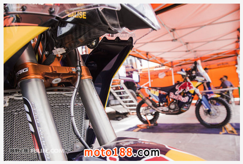 對于達喀爾拉力賽摩托車組的選手來說,他們“肉包鐵”一樣的駕駛環境要比汽車組的車手惡劣很多,危險系數也更大。而什么樣的導航系統、警示系統以及安全系統才能夠配合車手順利抵達目的地呢?今天讓我們近距離的觀察一下KTM車隊的達喀爾KTM 450賽車,并由KTM車隊車手Jordi Viladoms幫我們解讀,看看賽手背后到底擁有何種的高科技,能夠保障車手安全、快速抵達終點。