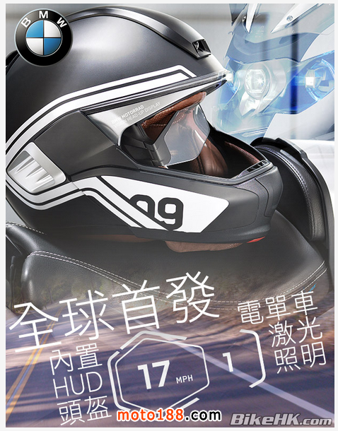 BMW Motorrad於拉斯維加斯舉行的Consumer Electronics Show (CES)中展出了兩項(xiàng)新技術(shù),當(dāng)中包括了內(nèi)置HUD (Head-up Display)抬頭顯示屏的頭盔,以及在K 1600 GTL概念車款上的激光照明,將電單車駕駛安全帶進(jìn)新紀(jì)元。