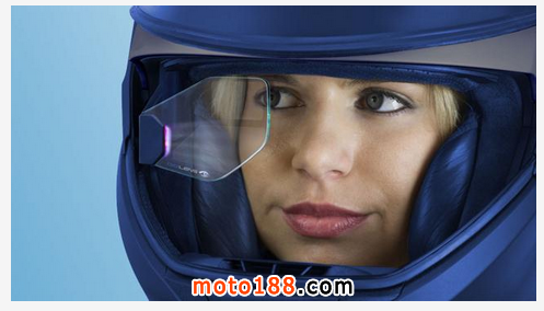 第一眼看去,這款設(shè)備如同是在摩托車頭盔中增加了一個(gè)谷歌眼鏡,只不過鏡片比谷歌眼鏡要大。