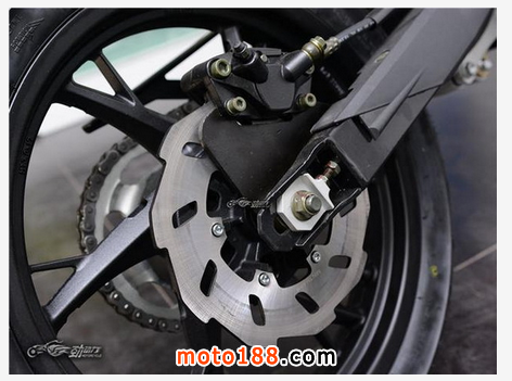 250毫升的排氣量配以國內唯一使用雙凸輪軸、四氣門、水冷單缸往復式6擋鏈條傳動的電噴發動機,對于車重只有140公斤的它來說,動力完全可以滿足大部分的用戶需求。