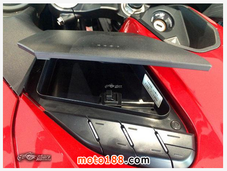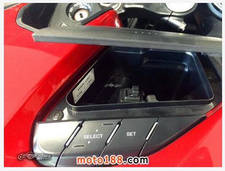 油箱罩上有兩個小型儲物盒,放一些票據和零錢還是很方便的。并且各個功能按鍵都設計的比較大,騎士帶著手套也能進行準確的觸控。