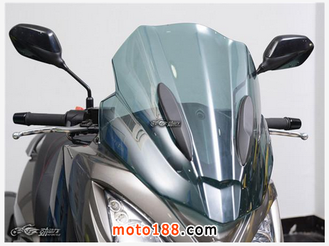 雖然風擋面積不大,但由于車頭較高,擾流效果還是不錯的,而風擋的顏色也和車身很般配。