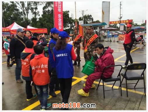 春運啟動以來第七天,梧州服務(wù)站似乎還沒有迎來摩托返鄉(xiāng)的客流高峰。整個服務(wù)站內(nèi),工作人員比返鄉(xiāng)人還多。只要有摩托車進入進站,好幾位志愿者就會主動上前。“一下子來好多人給我遞水,我手都不夠用了。”老家在賀州的張先生半開玩笑地告訴記者,每年開摩托車回家,只有今年才有這種“厚遇”。他說:“往年這個時候摩托車返鄉(xiāng)的人太多了,志愿者根本忙不過來,今年服務(wù)站好像有點冷清。”而從順德均安出發(fā)的梁先生告訴記者,返鄉(xiāng)的路上開摩托車的人比去年少了很多,去年人比較多他差不多得開8個小時才能到梧州服務(wù)站,而今年大概7個小時就行了。