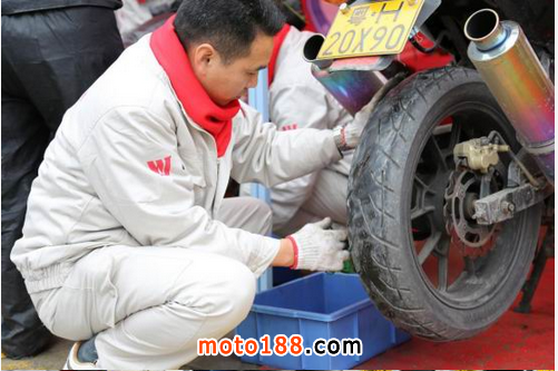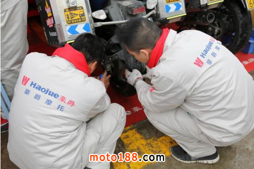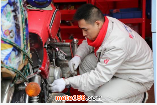 他們對每一輛到服務(wù)站的摩托車都檢查得特別仔細。“再小的問題都不能大意。”從福建空降的陳天福說:“有些人覺得鏈條松是小事,能騎就好,但其實這是個安全隱患,鏈子太松,萬一在高速行駛過程中掉鏈子,后果是不堪設(shè)想的。”像陳師傅這樣的“金牌維修師”,一個梧州服務(wù)站便投入了6名,分別來自于河南、山西、廣東等地。