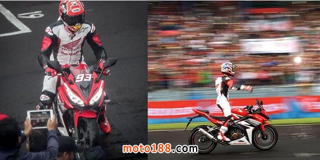 ●HONDA請來Motogp車隊前來印尼,協助宣傳新款CBR150R,兩位廠手-柏度莎及馬坤斯更在印尼仙圖試駕新車。