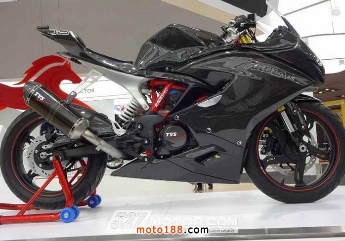 由BMW研發、印度摩托車廠TVS代工的G 310R在去年的EICMA上首次亮相,這款BMW小排量街車受到車友的廣泛關注。而本次TVS推出的這款Akula 310概念跑車搭載的就是G 310R的313c.c.單缸水冷發動機,為符合該車的跑車性能,TVS對該發動機進行了改進,使其有更大的動力輸出。另外,Akula 310采用了與G 310R相同的排氣系統,但更換了新的消音器;其減震系統和剎車系統也與G 310R十分相似。