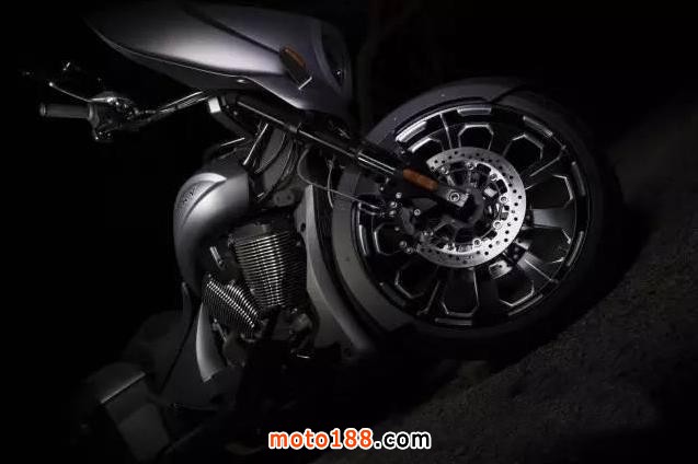 21英寸前輪轂。一切都更大,一切都更為精致。Magnum X-1采用了原廠標準配置的21英寸前輪轂。車輪用一整塊的鋁加工,更輕、更強的維護已經成為勝利摩托車的一個標志。