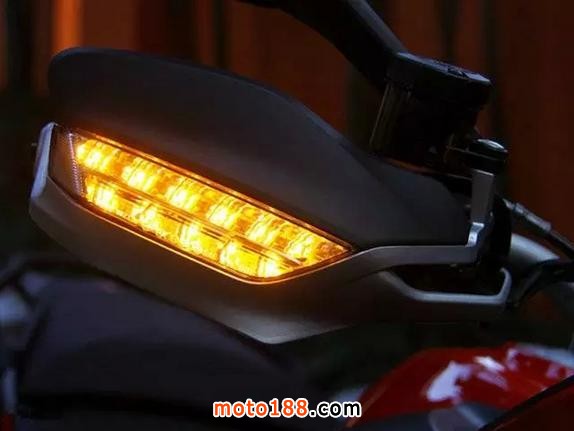 LED轉(zhuǎn)向燈被整合到了護手上,面積很大,亮起來夠顯眼。