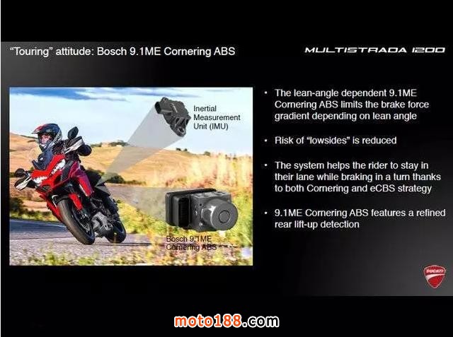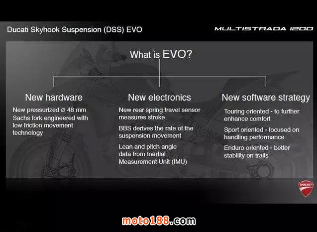 在2016款MTS 1200S上裝備的是DSS的升級版(EVO)。其變化主要在于采用了新的硬件、新的電子設備及新的軟件。在性能方面有了明顯提升。