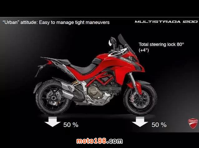 在底盤方面,新的MTS 1200的軸距為1529毫米,相當緊湊。前后輪重量分配比為50:50,乘員和邊箱等負載都在軸距之內(nèi),左右最大傾角達到47度,離地間隙180毫米、車把轉(zhuǎn)動范圍達到80度。另外,新MTS 1200的干重只有209公斤,輕便靈活。