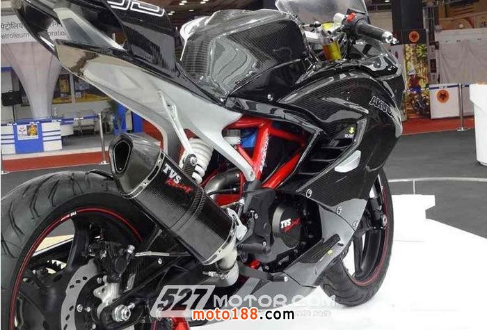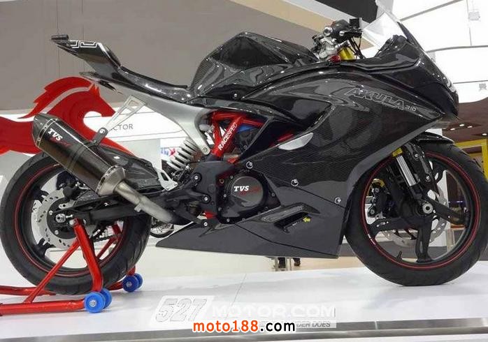 由BMW研發、印度摩托車廠TVS代工的G 310R在去年的EICMA上首次亮相,這款BMW小排量街車受到車友的廣泛關注。而本次TVS推出的這款Akula 310概念跑車搭載的就是G 310R的313c.c.單缸水冷發動機,為符合該車的跑車性能,TVS對該發動機進行了改進,使其有更大的動力輸出。另外,Akula 310采用了與G 310R相同的排氣系統,但更換了新的消音器;其減震系統和剎車系統也與G 310R十分相似。