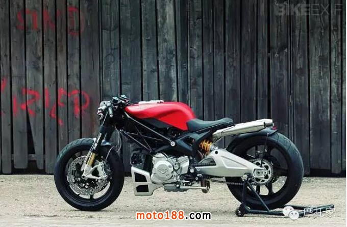 例如使用了很多手工打造的排氣和其他鋁合金部件以及來自Monster 696的搖臂。