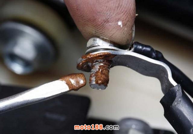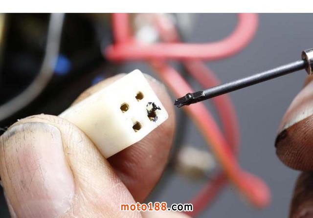 ▲這是用于電線的連接端子,在老舊的摩托車中很常見,接線狀態會根據摩托車的存放條件而逐漸劣化。
