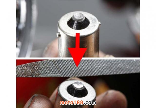 在很多情況下,燈泡底部的金屬接點會因為長時間與燈泡底座摩擦導致磨損,如果間隙變大會導致接度不良、導電性降低,這時候只要使用銼刀稍微修整一下就能改善接觸不良的問題。