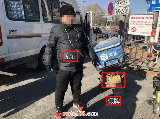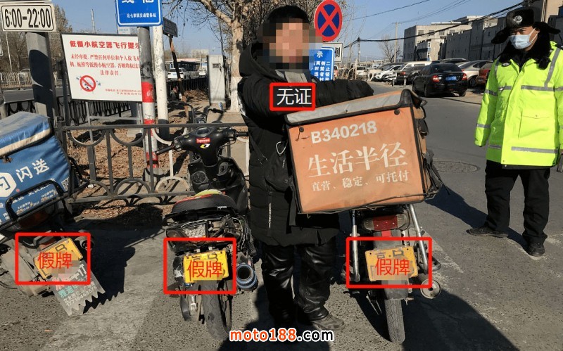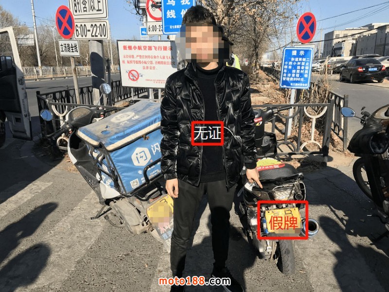 先是一輛送外賣的兩輪摩托車被民警攔住,當(dāng)民警要求駕駛?cè)擞谀吵鍪抉{駛證時(shí),于某承認(rèn)自己根本沒有駕駛證。民警通過對(duì)于某的身份信息進(jìn)行核查,證實(shí)于某確實(shí)沒有駕駛證。而在對(duì)其所駕車輛進(jìn)行車檔信息核查時(shí)發(fā)現(xiàn),其車牌也是偽造的。