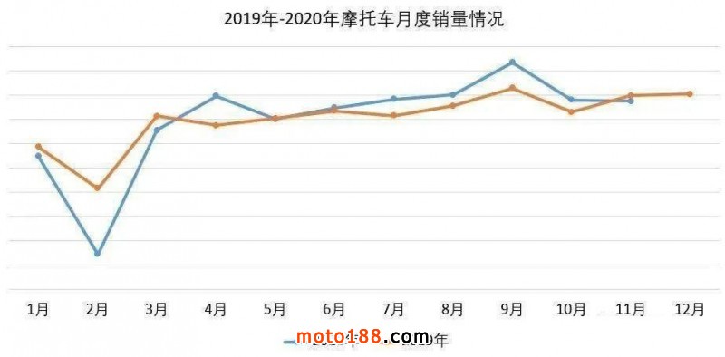 疫情后國家推出了強有力的政策,助力全行業復工復產,減輕或免除稅費,讓各行業得以喘息之機,也讓摩托車行業不管是廠家還是經銷商,同樣受益。行業產銷量逐步得以恢復,以至2020摩托車全年的產銷量并沒有太大的波動。