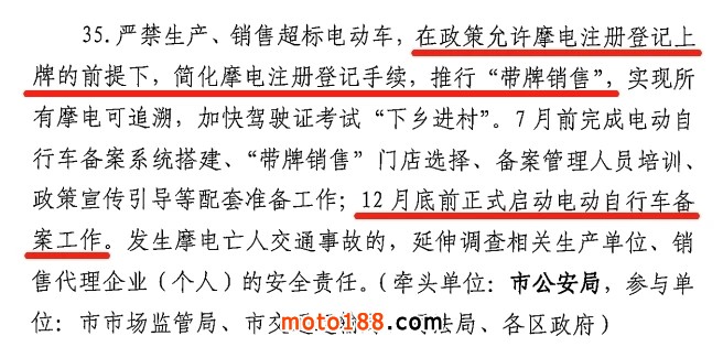 簡化摩電注冊登記手續(xù),推行“帶牌銷售”,12月底前正式啟動電動自行車備案工作。