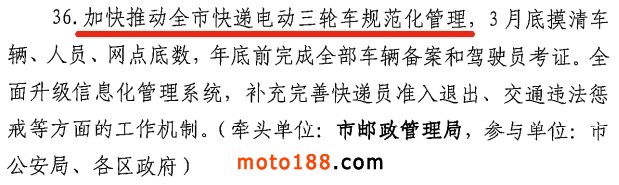 4月前完成“限摩限電”政策調整優(yōu)化方案,推進電動自行車備案管理工作方案。