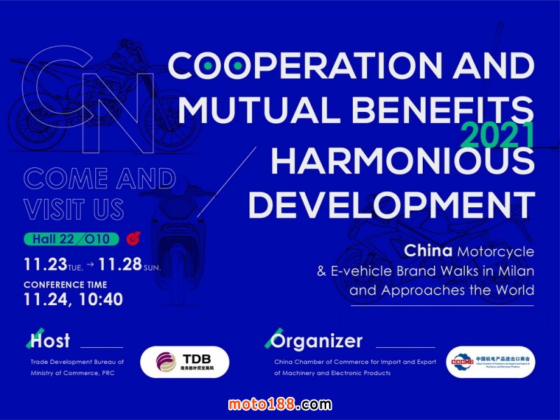 為進一步響應“十四五”規劃中打造科技強國、制造強國的號召,助力民族摩電企業“走出去、走進去、融進去”,由中華人民共和國商務部外貿發展事務局主辦、中國機電產品進出口商會承辦的“‘合作共贏 和諧發展’暨中國摩托車電動車品牌走進米蘭走進世界”的一系列主題推廣活動,將在本屆米蘭展期間正式啟動,旨在進一步強化民族摩電企業在全球范圍內的影響力和競爭力,借助EICMA這樣的頂級行業平臺展現中國優秀民族智造業的風采。