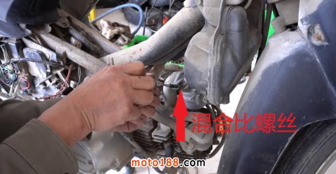 啟動開后如果摩托車怠速不穩(wěn),這樣我們就需要調(diào)整混合比。調(diào)整混合比之前首先把怠速調(diào)高一點,啟動開后等摩托車發(fā)動機完全熱后再調(diào)整。然后找到化油器上的混合比螺絲,不管是順時針還是逆時針,調(diào)到摩托車發(fā)動機轉(zhuǎn)速最高停下來,這樣混合比狀態(tài)也是最好的,也是最省油燃燒也最充分,發(fā)動機動力當然也是最佳狀態(tài)。