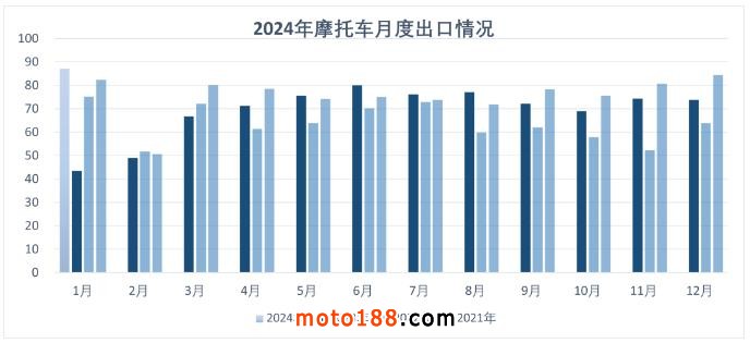 1月,據(jù)中國摩托車商會統(tǒng)計(jì),我國摩托車出口延續(xù)去年穩(wěn)步向好的發(fā)展趨勢,出口環(huán)比、同比皆明顯增長,外貿(mào)出口實(shí)現(xiàn)開門紅,出口量達(dá)到近年來單月出口量最高水平。