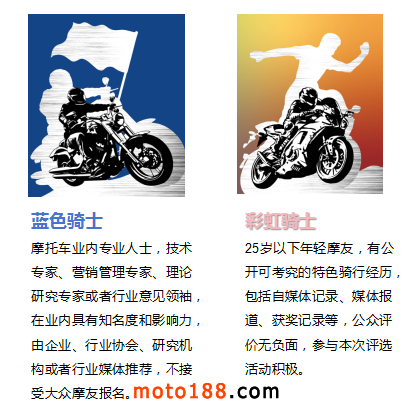 面向于摩托車發燒級愛好者的評選,他們具有較長的摩托車運動或休閑旅游的經歷,對摩托車背上的生活,充滿激情與活力。