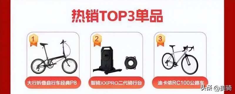 其中,最熱銷單品是大行經典折疊車P8,折疊車界的“常青樹”,無數騎行愛好者的“啟蒙車”名不虛傳。第二是智騎二代騎行臺,售價1999買騎行臺送價值999的功率計折扣力度非常誘人。迪卡儂入門神車RC100位居熱銷單品第三。