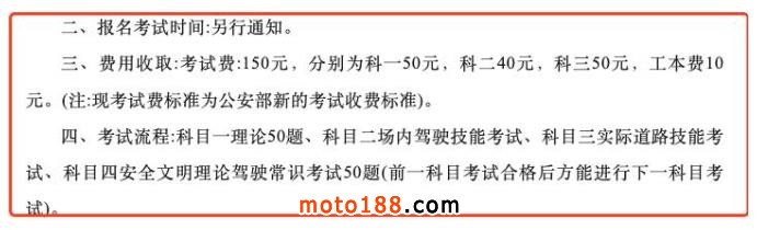 最近貴州滑石鄉就開展了摩托車駕駛證送考活動,有需要考取摩托車駕駛證的群眾,直接在村委會預約登記,考試費用直接按照公安部最新的考試標準進行收取。科目一50元、科目二40元、科目三50元、工本費10元,一共是150元。