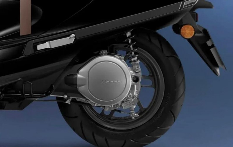 這款電動踏板車與國內的電動摩托車最大的不同就是電機的安裝位置,其驅動電機安裝在后輪的側面,相當于燃油踏板車的后皮帶輪的位置變成了電機的位置。動力從驅動電到后輪的傳遞也是通過了變速傳動箱,這種設計最好的地方就是后輪跟燃油踏板車一樣是可拆卸換胎的。