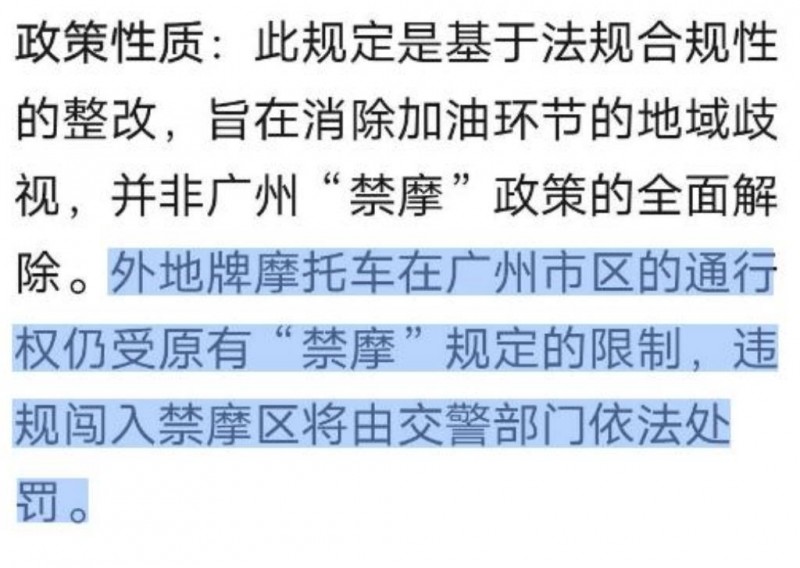 它特意說清楚了,“允許加油”不代表“解除禁摩”,市區禁摩的規定還照樣生效,大家還是不要闖禁。