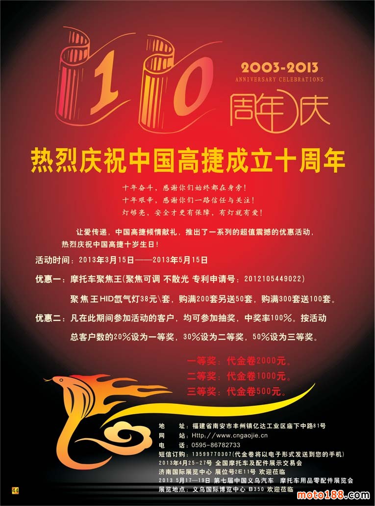 《摩托車與配件》自三月份正式改版后,雜志的    有較大的變化。因為是剛剛推出,市場還有一個適應時期,尤其一些市場人士有顧慮,擔心頻率加快以后廣告的留存期縮短,還有擔心印刷量會下降。為了慎重起見,我們雜志社在春運一結束后就安排部分人員去華東和華南及中南、西南等市場走了一遍。先后去了如皋、無錫、撫順、臺州以及商丘、鄭州、武漢、襄陽、荊州、株洲、長株潭、廣州、重慶、成都等市場,行程在隴海線南邊走了一圈。到市場第一線汲取客戶的意見,了解市場的發行,調整了部分發行點,并新建和恢復了六個發行點,進一步完善市場的發行。雜志改刊后不僅僅是期數的變化,更是一個系統的工作,這涉及到我們服務的提升,整個系統的升級。在這一期雜志內,我們會用一定的篇幅介紹我們所走過的市場的具體狀況。目前我們是行業長期調整以來僅存的專業媒體,一方面我們面臨市場的風險,如果不努力我們也會和前面已經淪陷的媒體一樣,被市場拋棄。另一方面來自我們內部及系統內的風險,即我們的管理和服務是否和雜志升級一樣,也在同步提升?我們面臨新的改革發展機會,我們能否把握住、把握好?在進行科學的發展時,不能因為太 太快而摔跤,所以我們雜志在今年的發展目標是:緊跟市場、穩中求進。在外銷市場面臨銷售不暢的現實情況下,如何服務好內需內銷市場,這也是我們和生產型企業共同要探討的課題。通過對市場的走訪,我們有了目標和方向,也有了信心和動力。正因為此,我們三月份推出雙期后所產生的一系列問題,我們都在妥善應對。今年四月份濟南會議,我們會展現我們去冬今春的勞動成果: